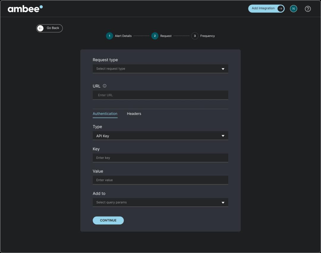 To initiate the alert setup process, tap the ‘Add Integration’ button on the top right.